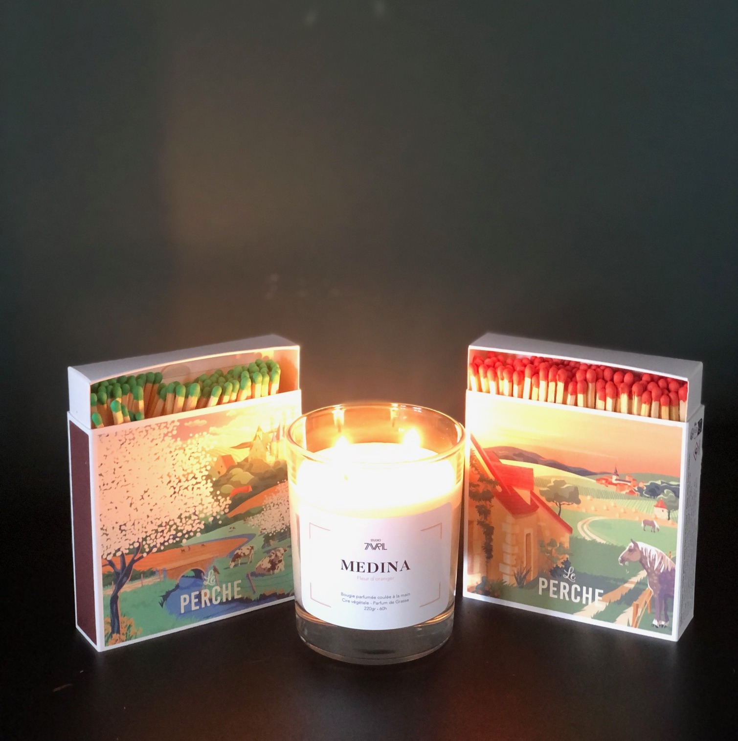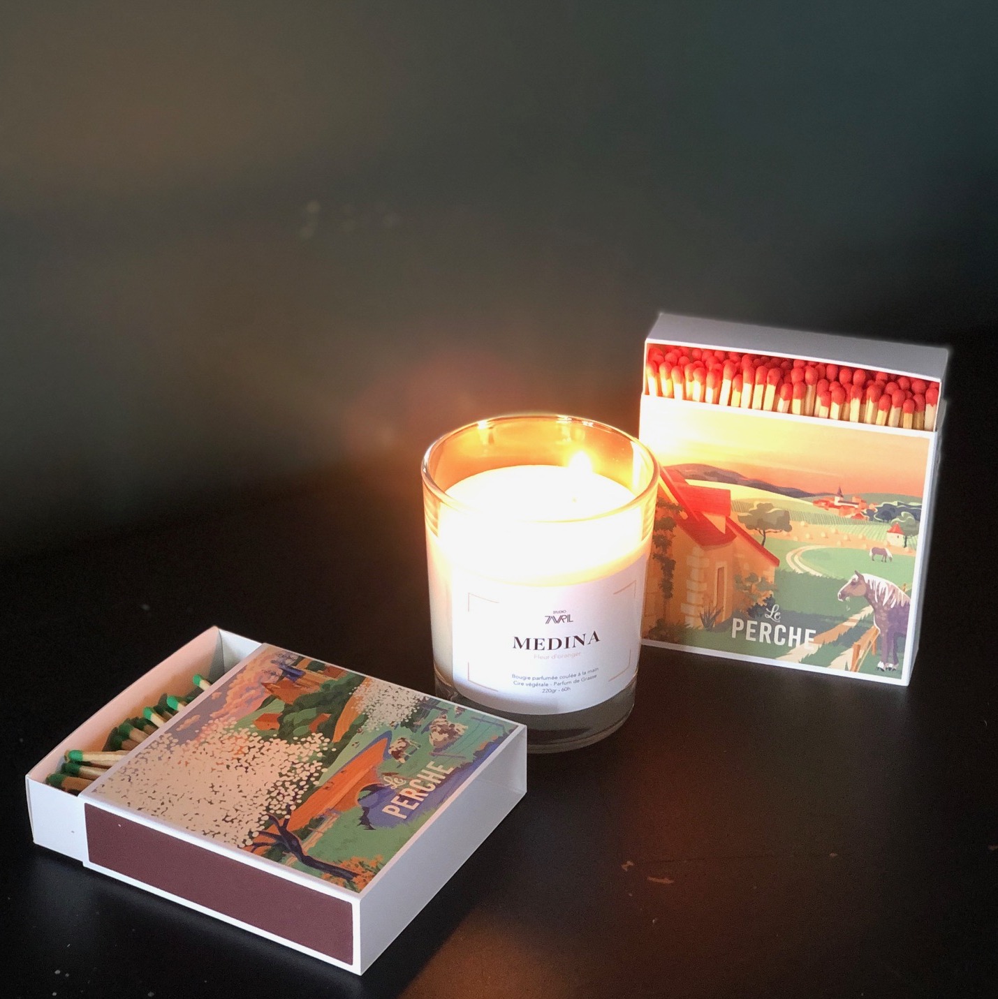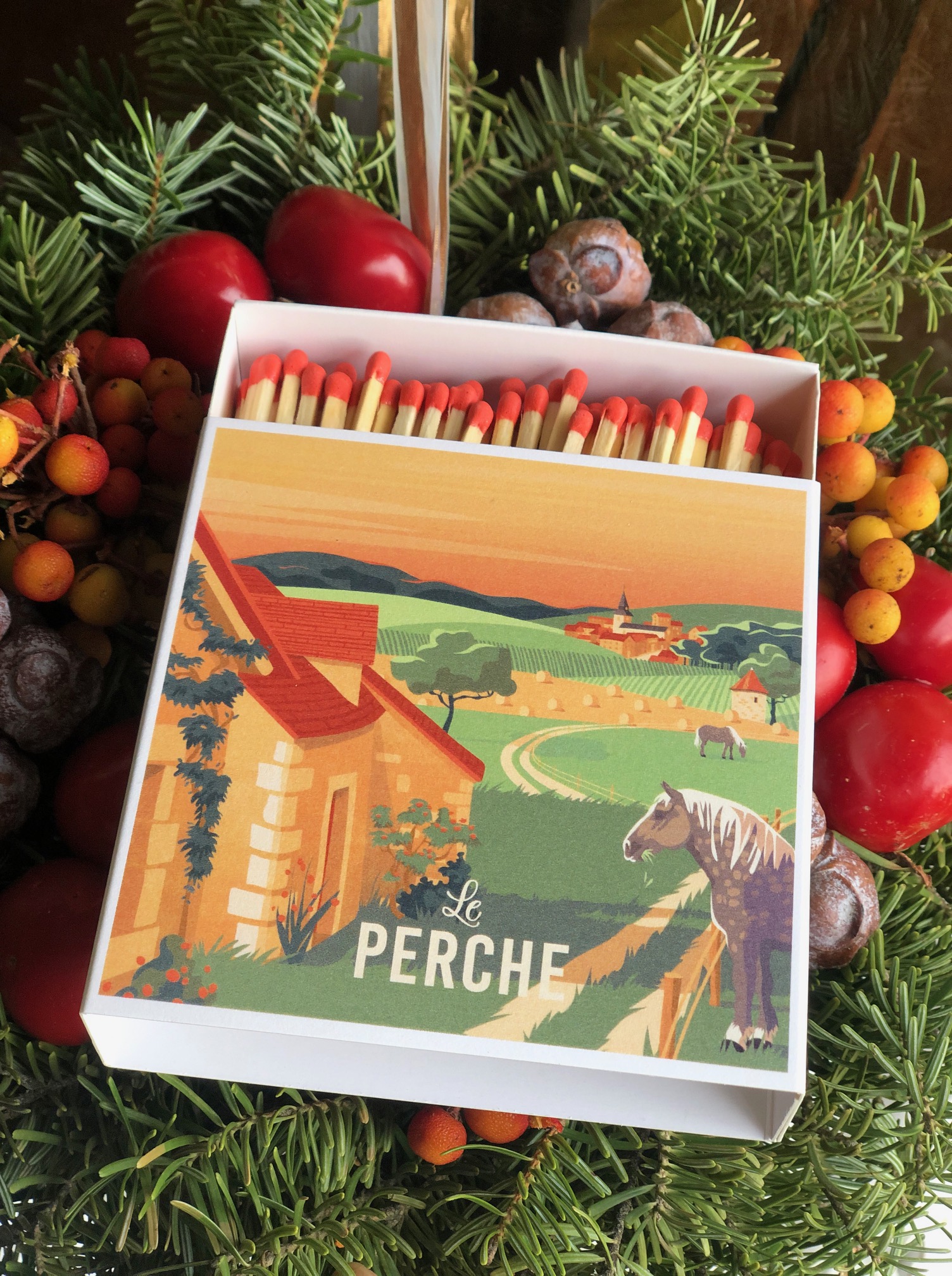 Superbes boîtes d’allumettes “Le Perche”, taille XL signées Studio7Avril mettant en lumière notre région d’adoption.