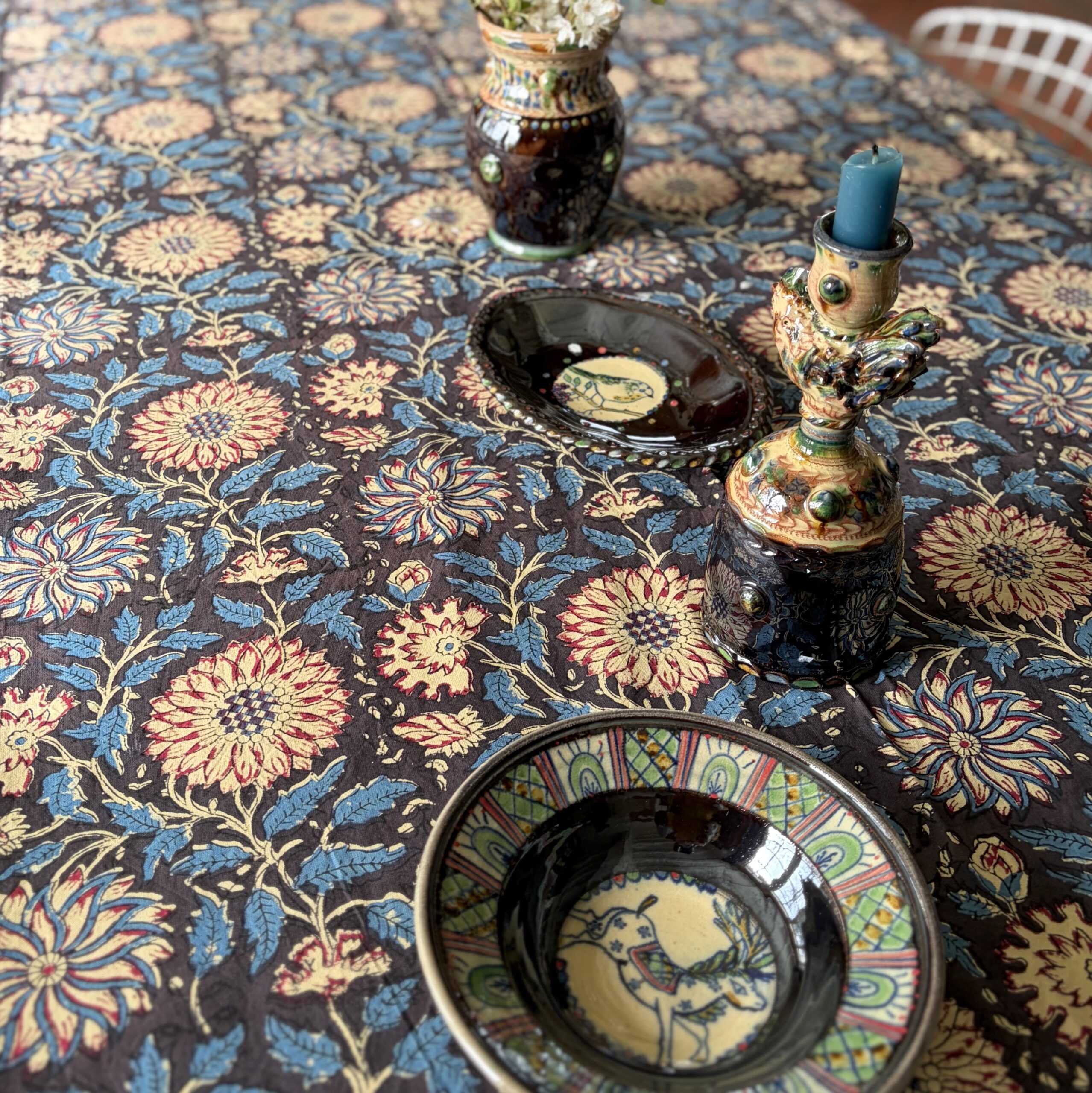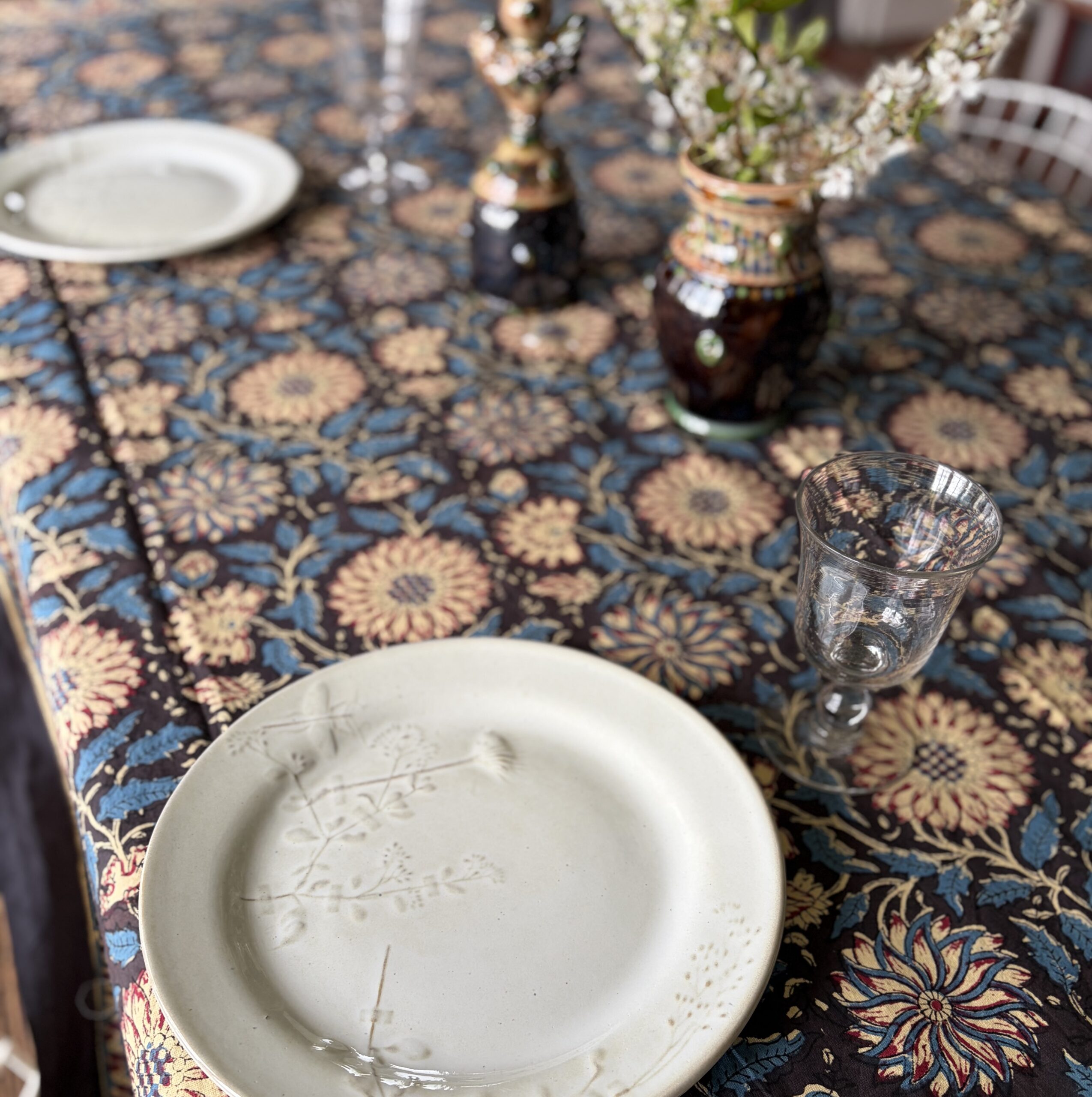 Très belle nappe imprimée à la main au tampon de bois (blockprint) à Jaipur en Inde pour Studio7Avril.
