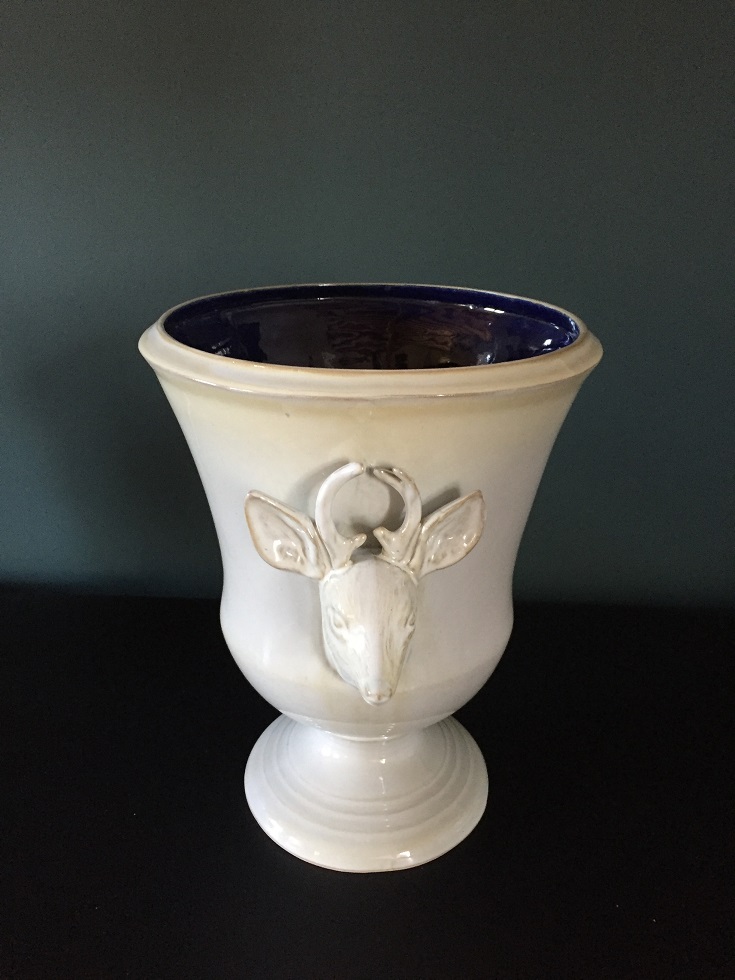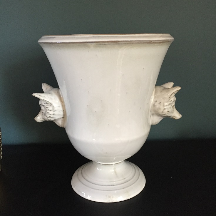 2 têtes d’animaux (renard ou cerf pour les grands modèles, oiseau ou lapin pour les petits modèles), une sur chaque côté du vase.