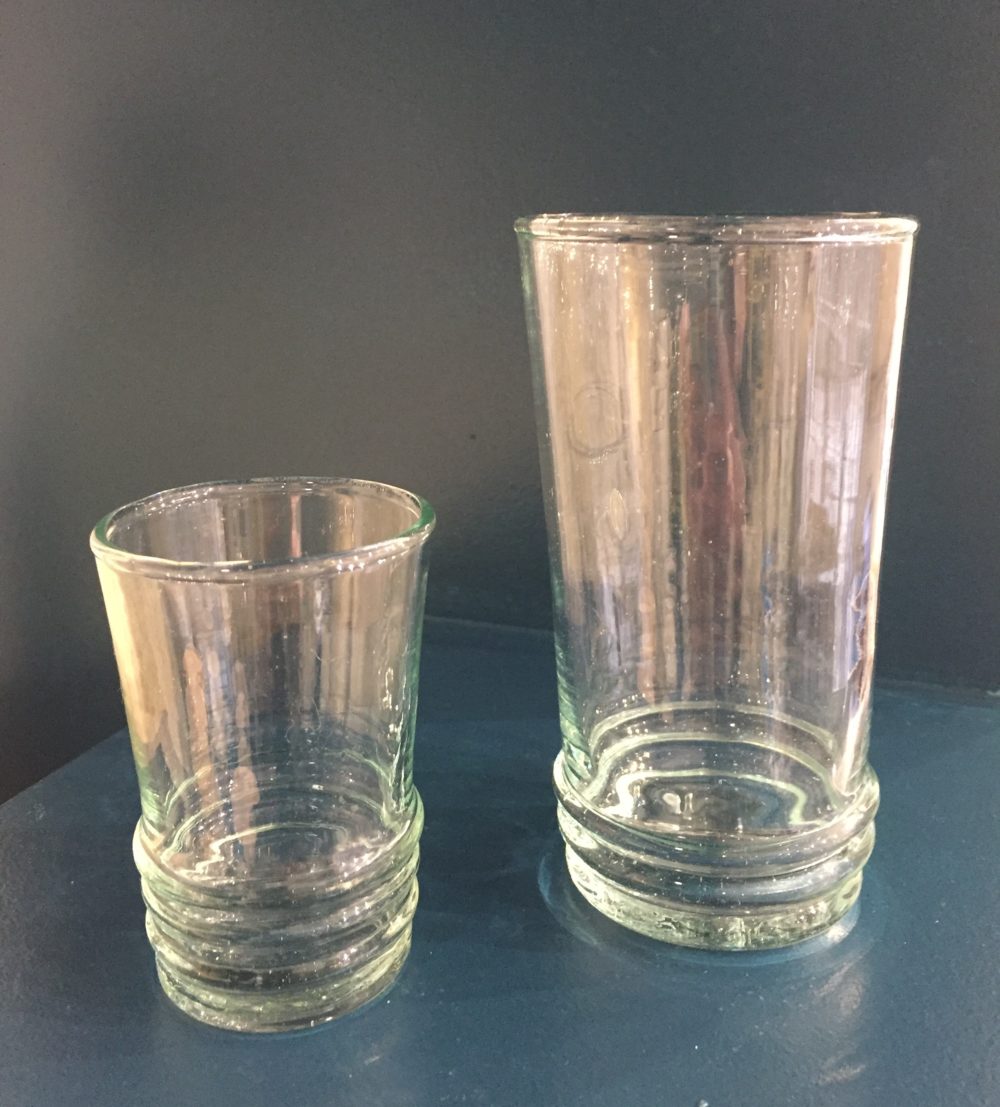Saturne pour les 3 petits anneaux à la base de ces adorables verres soufflés à la bouche au Maroc.